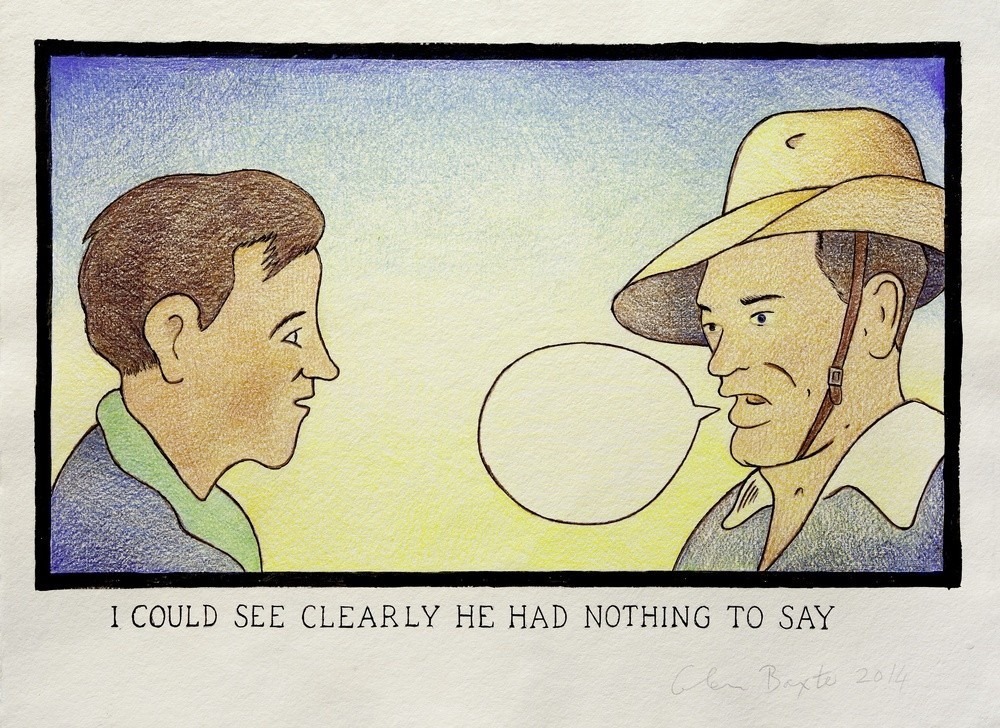 Dessin de Glen Baxter, dessinateur britannique né en 1944 à Leeds, connu pour ses dessins ironiques.